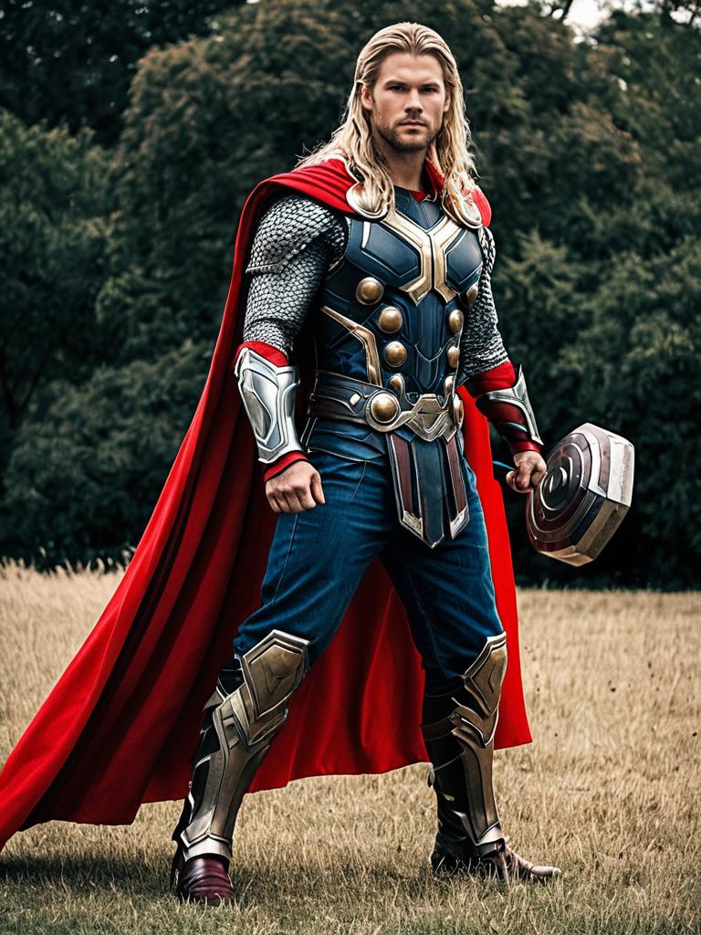 Man in Homemade Thor Costume with Cape