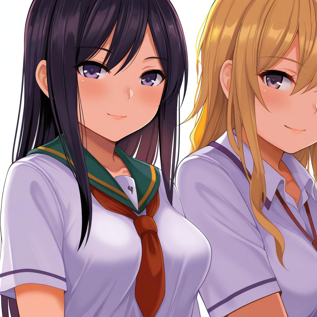 Aihara mei, citrus (saburouta), 1girl, lips, purple eyes, long hair, black hair, medium breasts, school uniform, aihara academy school uniform, by artist surio, illustrious