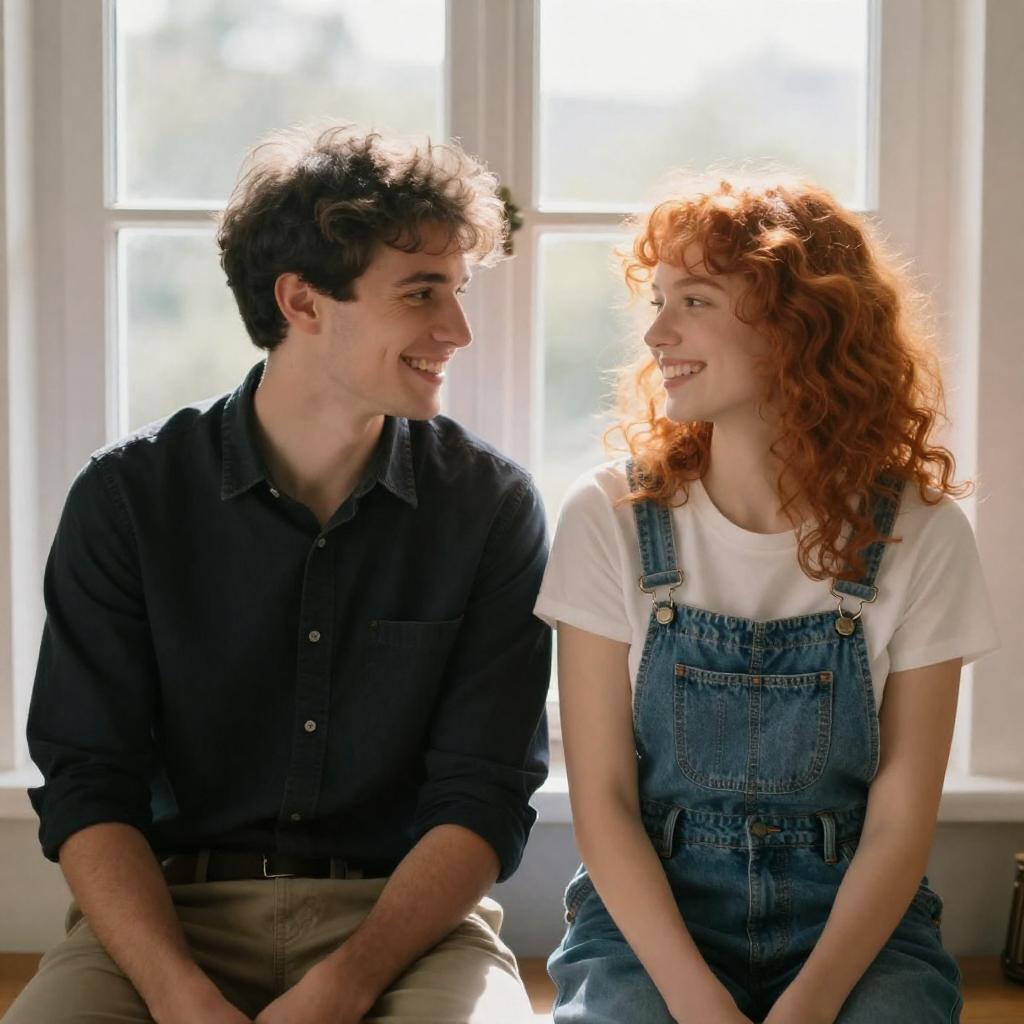 Young Couple Embracing in Bright Room