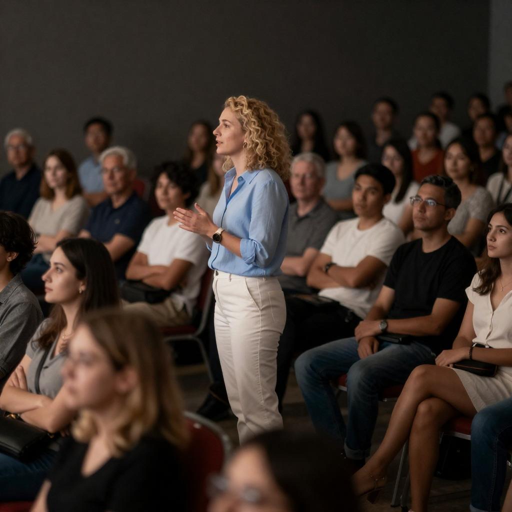 Captivating Speaker at a Crowded Event