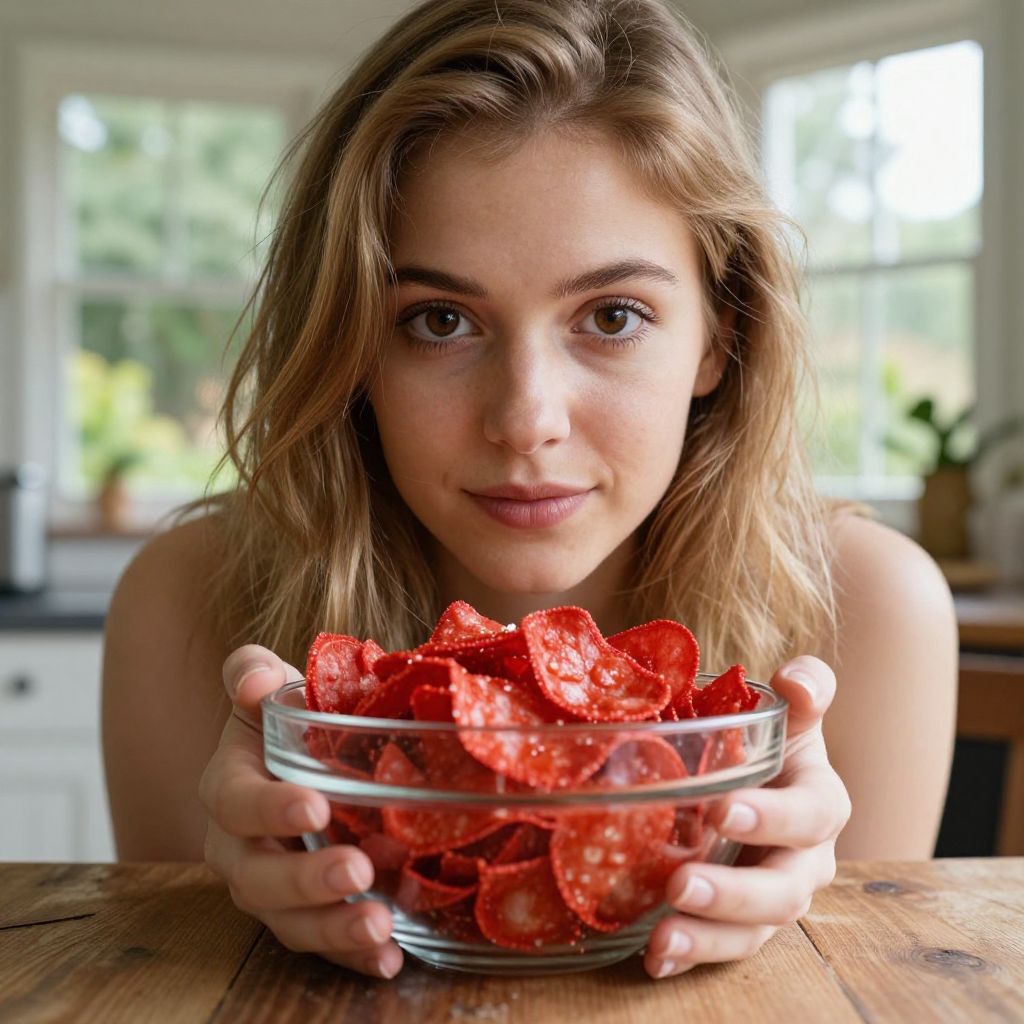 Young Woman with Red Chips Bowl