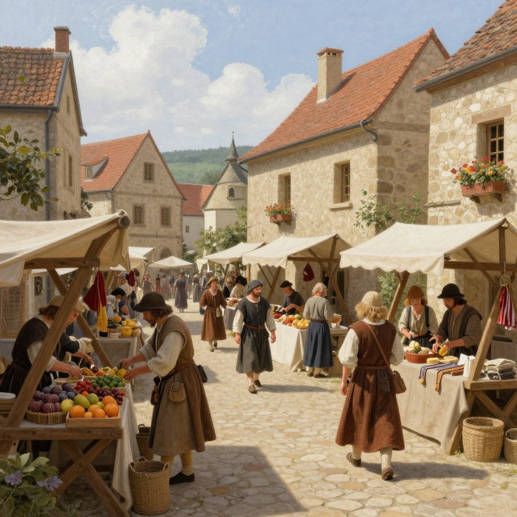 Bustling Medieval Marketplace Scene