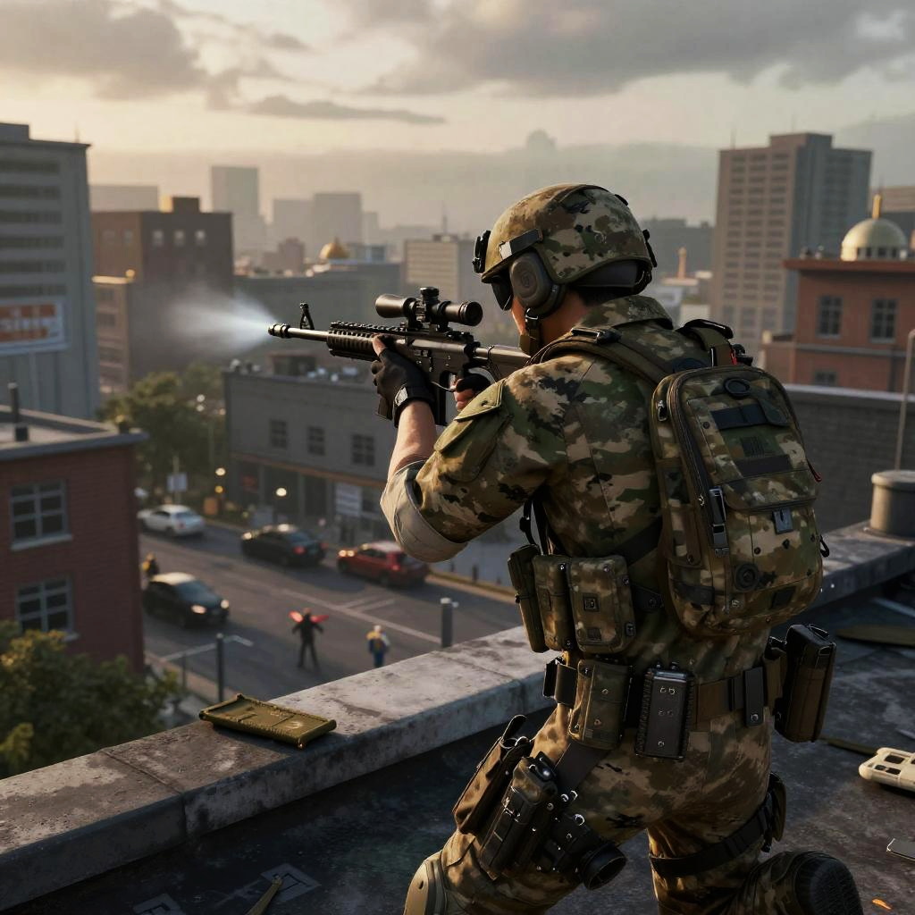 3D Modern Warfare Sniper Rooftop Scene