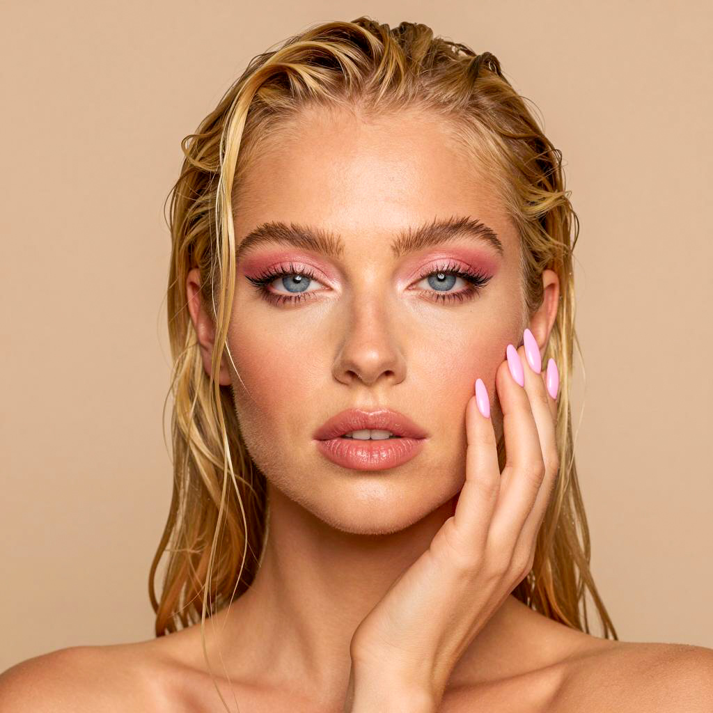 Blonde Woman Applying Lip Gloss Reflection