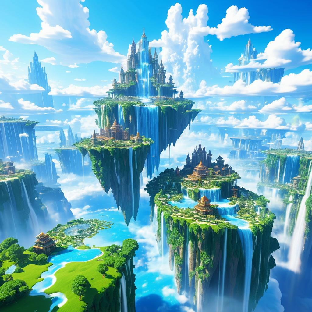 Floating Island City with Waterfalls in the Sky