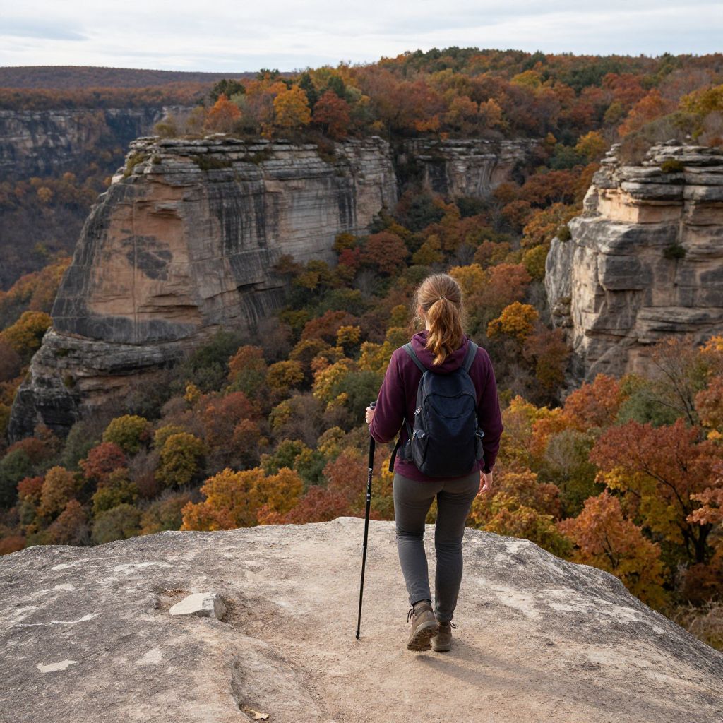 Woman hiking at Artist's Bluff in autumn - Stock Photo - Images