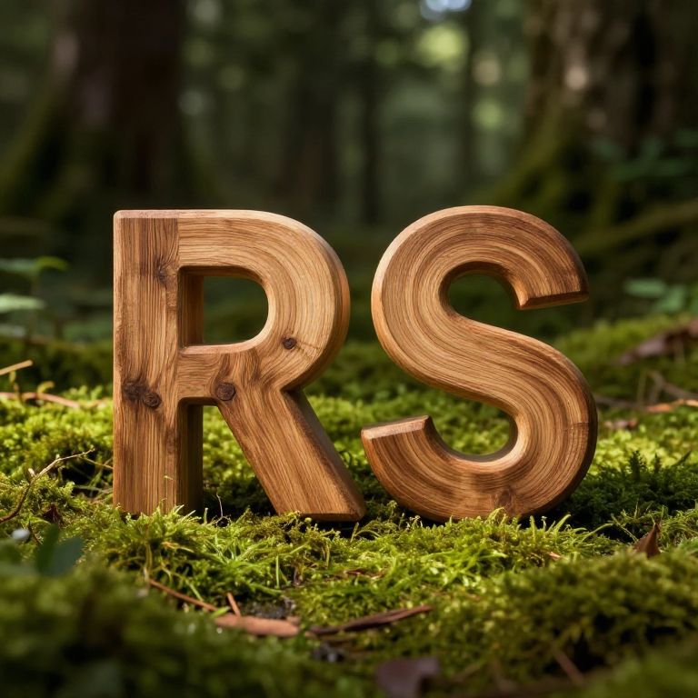 Dark, textured stone with a carved "R" and "Fuss" in relief, surrounded by cracks and small green leaves. Mysterious and weather