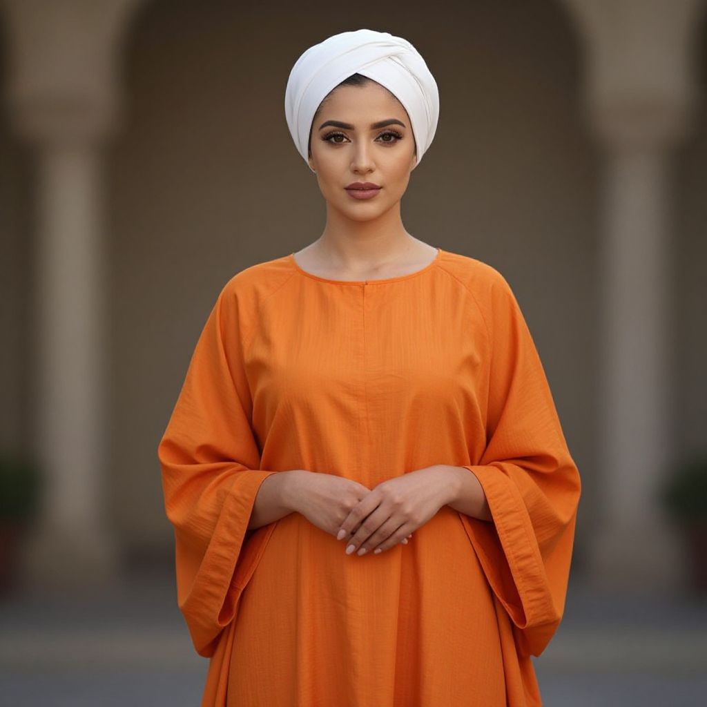 Woman in White Turban and Orange Dress