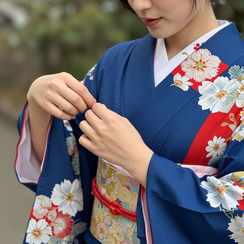 Asian Clothes, a close up of a woman in a blue and red kimono