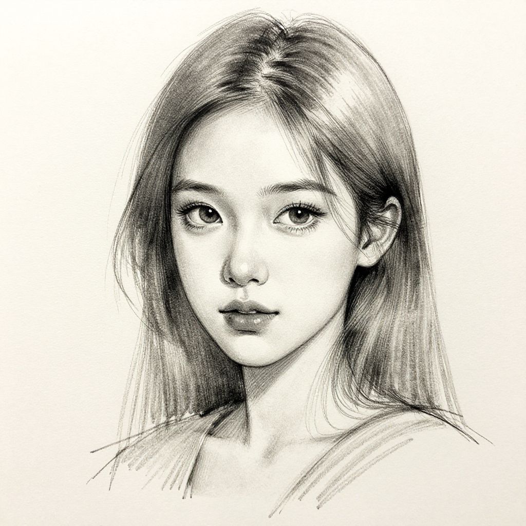 Intricate Pencil Drawing of Woman