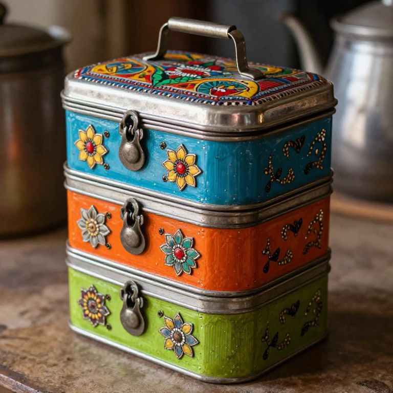 Rustic wooden box adorned with rosemaling floral and scroll patterns, bright hues of red, yellow, and green, vintage Scandinavian decor style, textured brushwork, handcrafted folk art piece, natural light highlighting the detailed ornamentation.