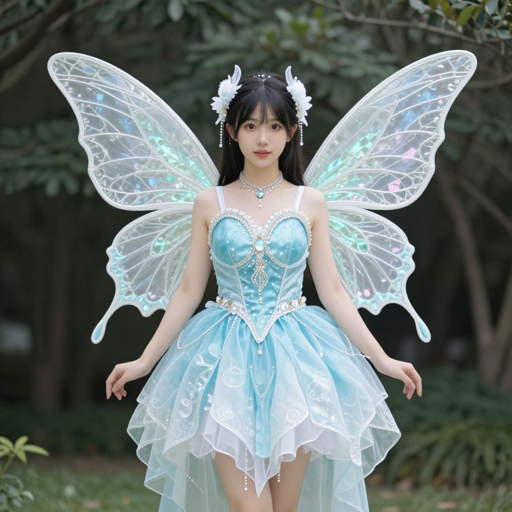 Butterfly goddess costume, fairy with butterfly wings and a blue dress