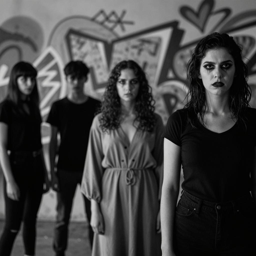 Black and White Band Rehearsal with Drummer and Vocalists