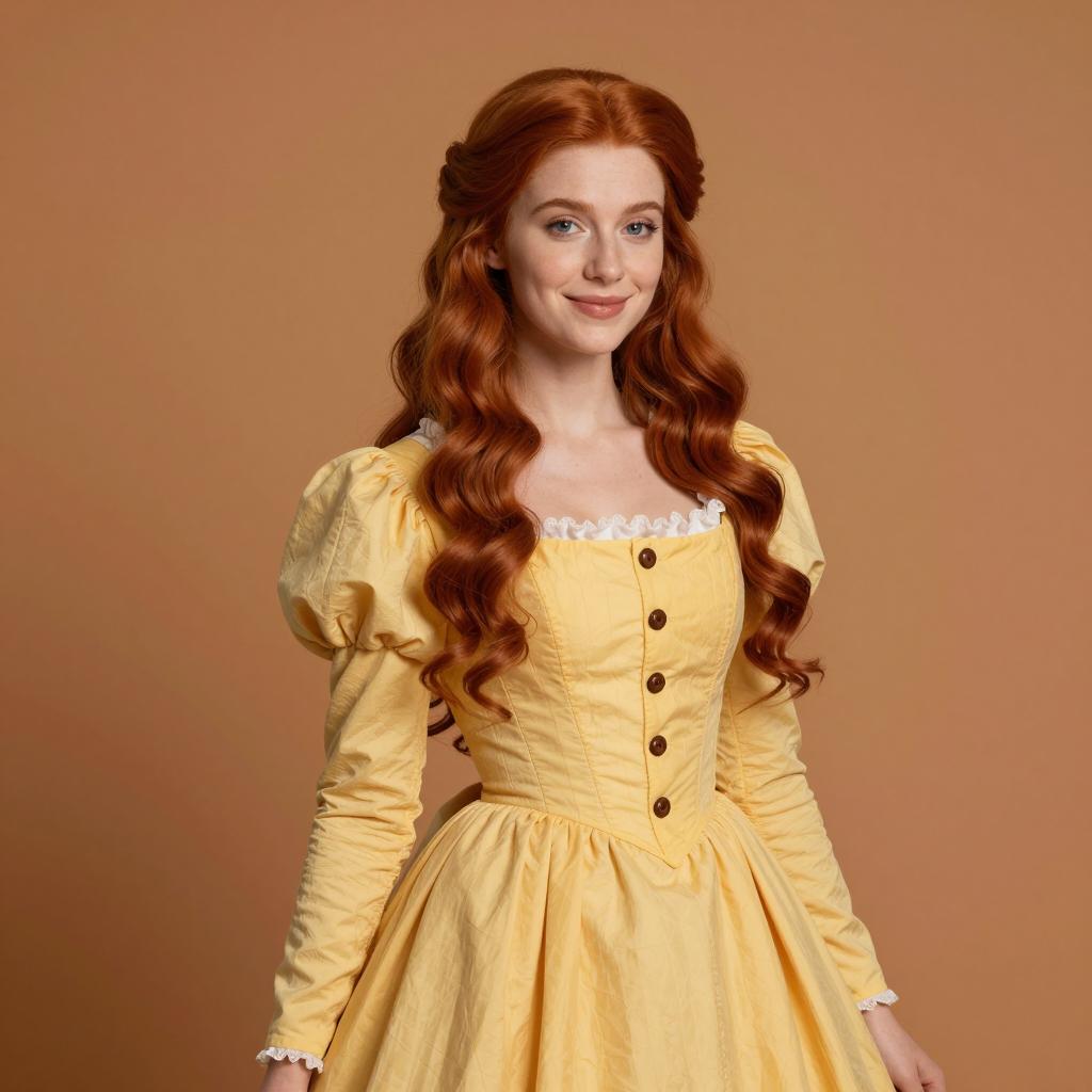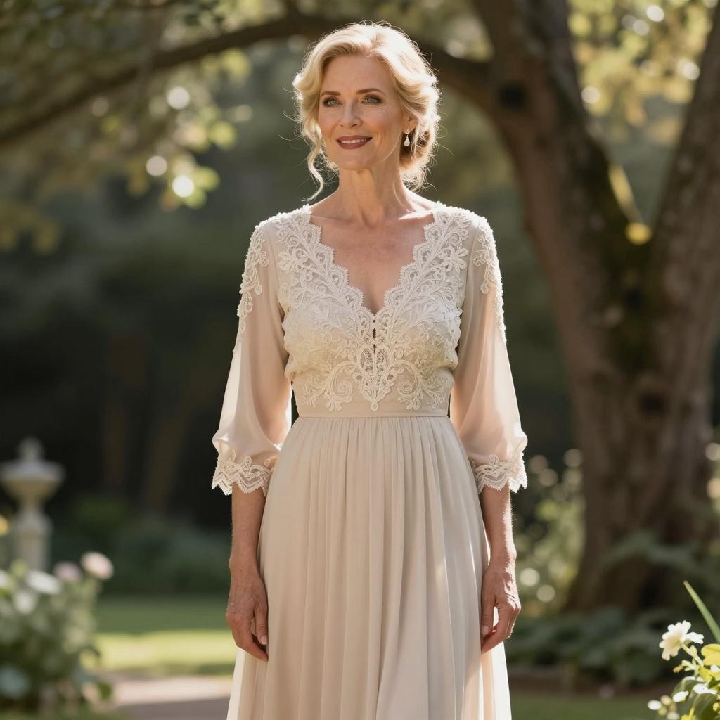 Mum son matching costume, photorealistic, mother and son, both wearing floral headbands, mother with short blonde hair, son with curly brown hair, mother in long mint green dress with orange floral pattern and gold trim, son in matching mint green dress with orange floral pattern and gold trim, neutral gray background, soft lighting, standing close together, smiling, cute, family, vintage style, elegant, detailed ures, realistic fabric, digital art, subtle shadows