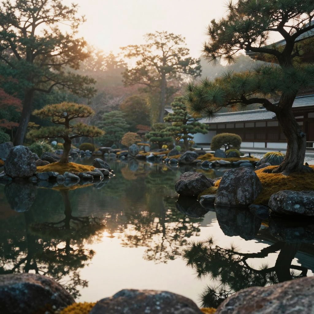 1080x1080 picture of a ancient stone circle, in Scottish highlands, at golden sunset, calm water with detailed reflections, soft atmospheric haze, golden hour glow, natural colors, balanced composition with leading lines, foreground texture for depth, subtle lens flare, serene mood, ultra crisp detail