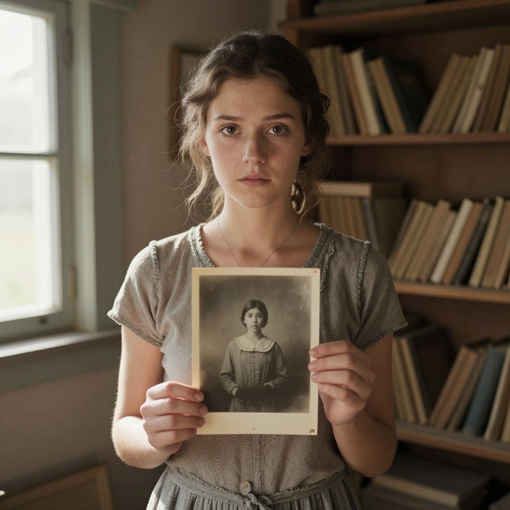 In a sunlit room where whispers of history linger, a young woman weaves not just threads but the delicate fabric of memory, her hands moving with a quiet grace that speaks of timeless connection and the enduring rhythm of creation.