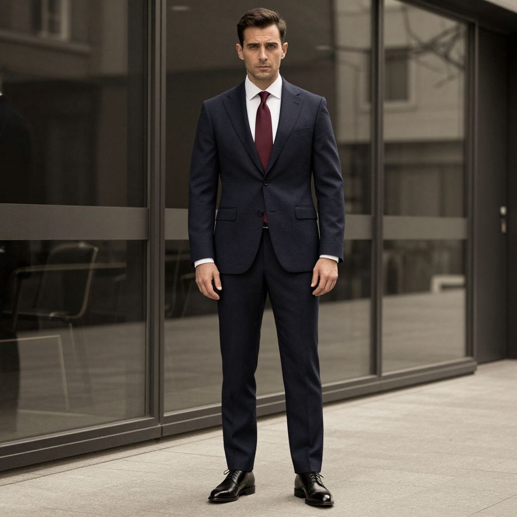 Confident Man in Navy Wool Suit