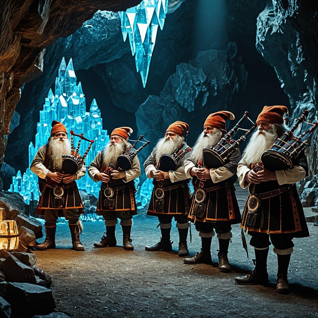 Seven Dwarves Playing Bagpipes in Crystal Cave
