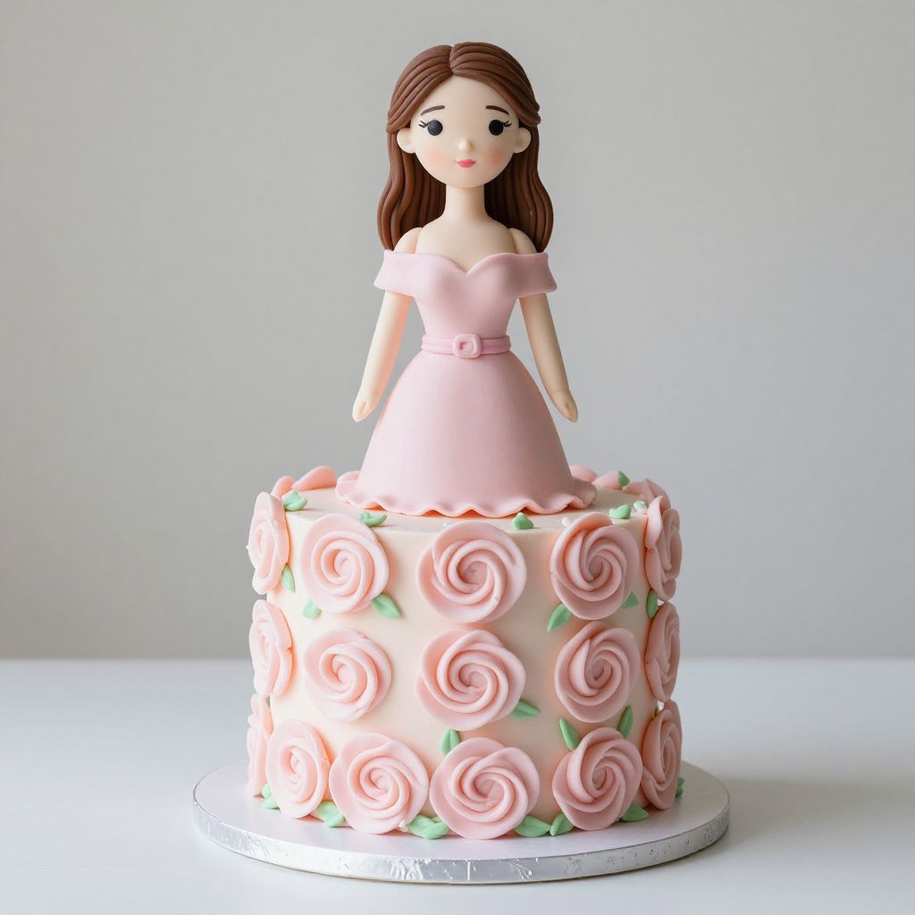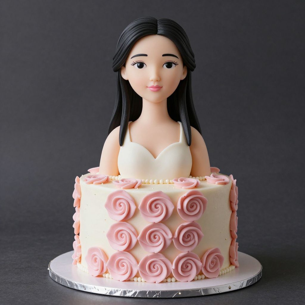 Beautiful Lady Sugar Crafted with Rosette Flora design Woman 3D Customized Cake