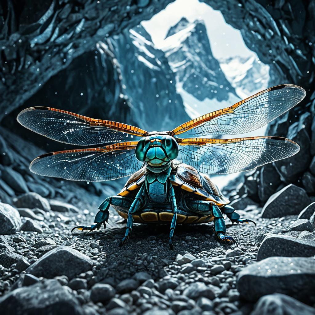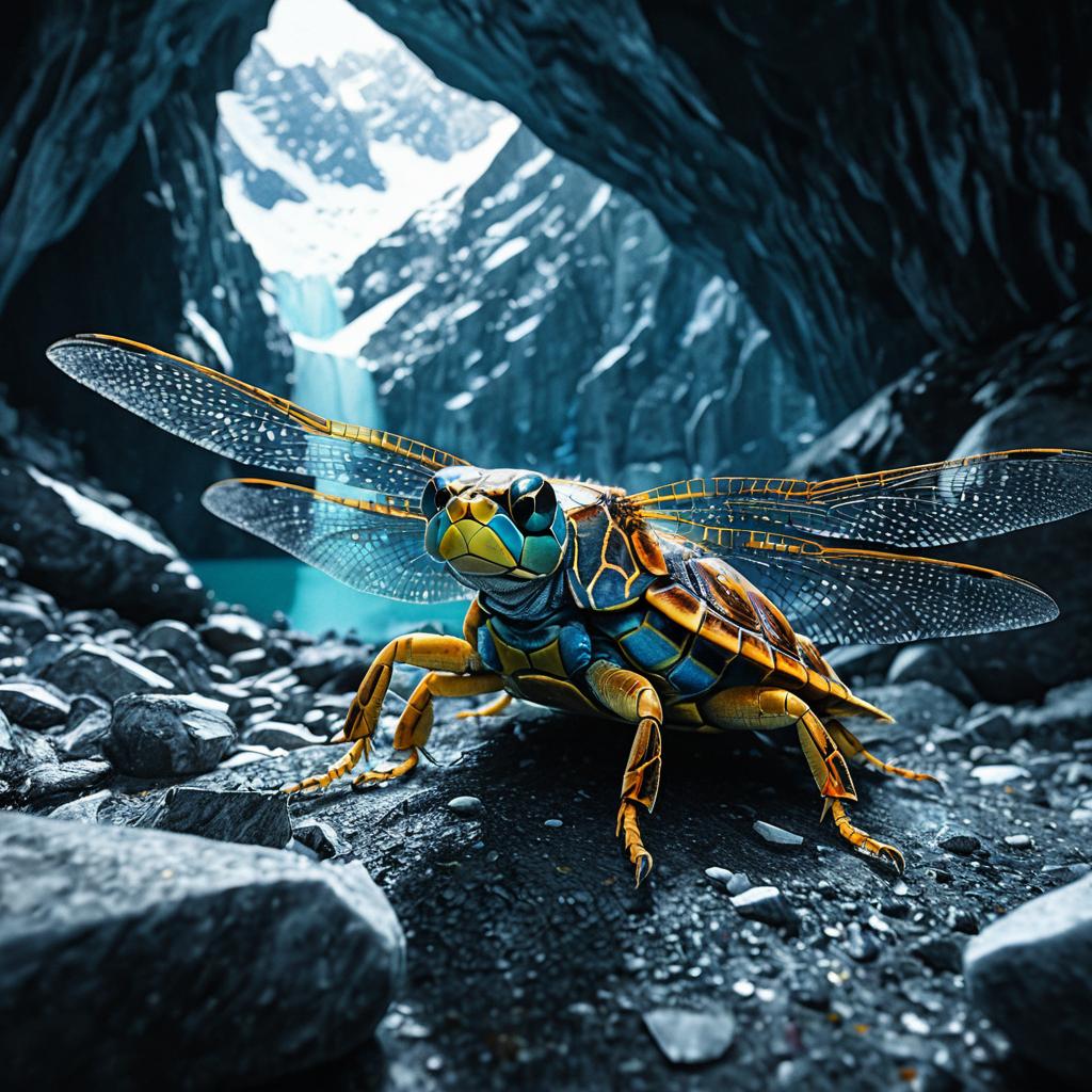 Crystal-Scaled Dragonfly-Turtle Hybrid in Alpine Glacier Cave