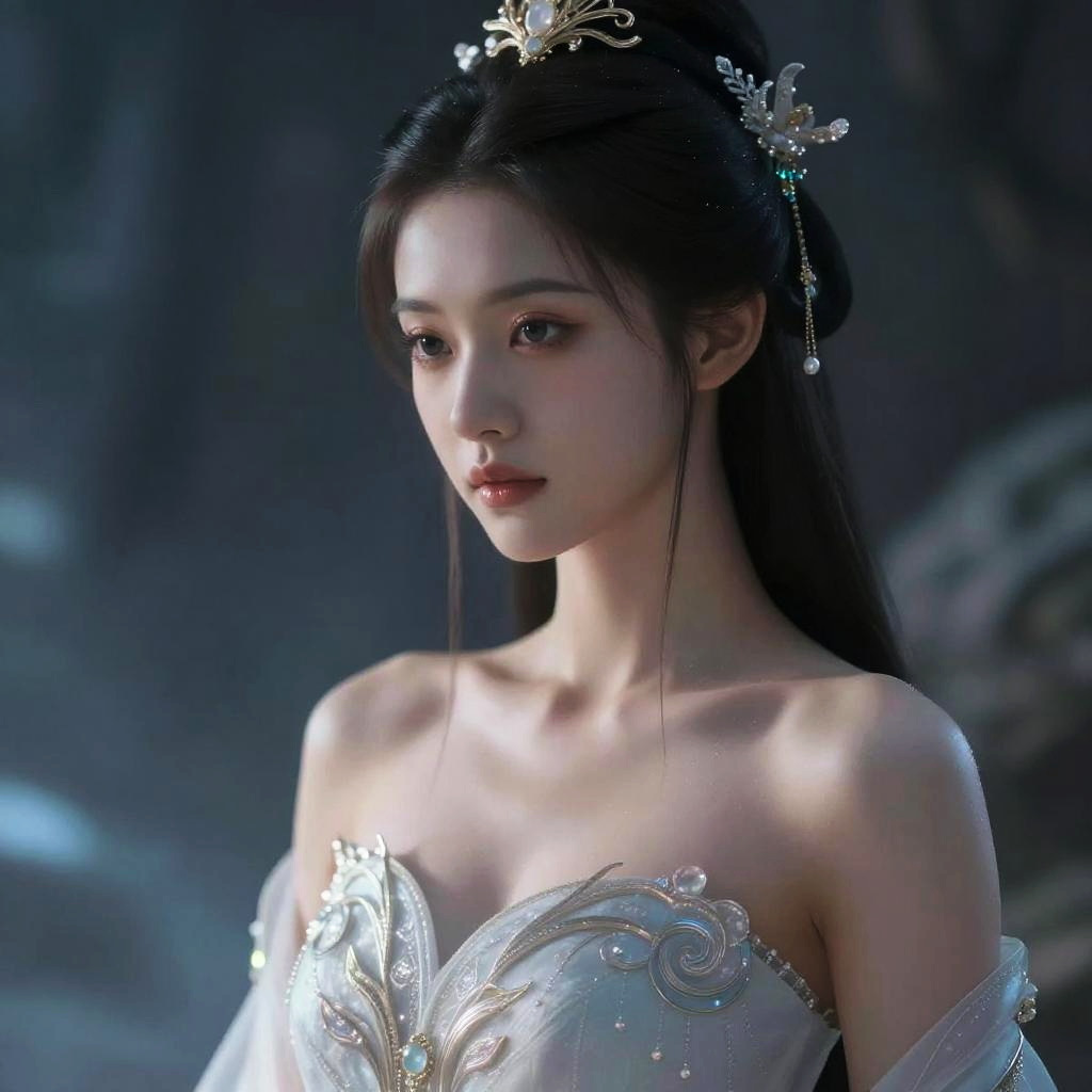 Sexy AI prompts, alluring artificial intelligence figure in ethereal digital environment, soft lighting, fantasy sci-fi blend, high resolution