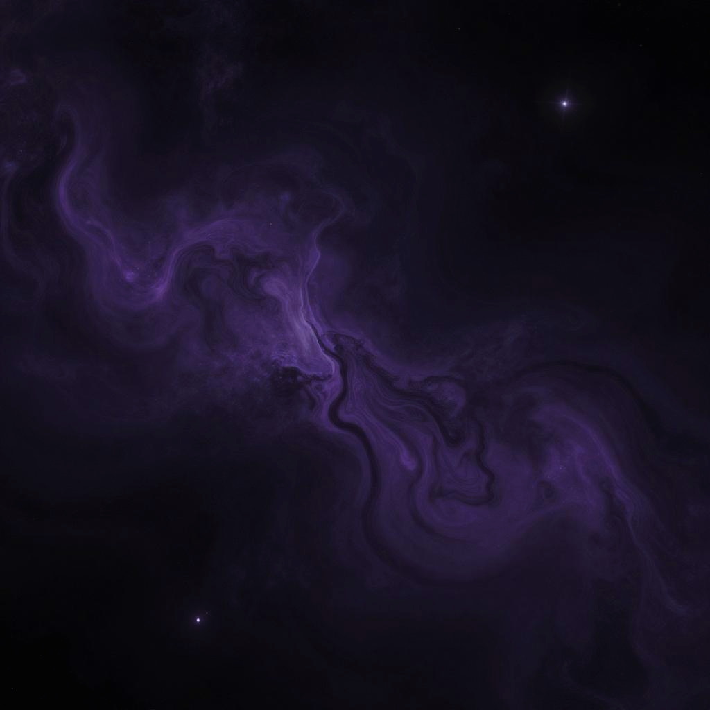 A fluid purple to black gradient blending seamlessly across a dark cosmic landscape, speckled with faint stars and nebulae, evoking a deep space feel with a hint of fantasy and depth in digital painting style.
