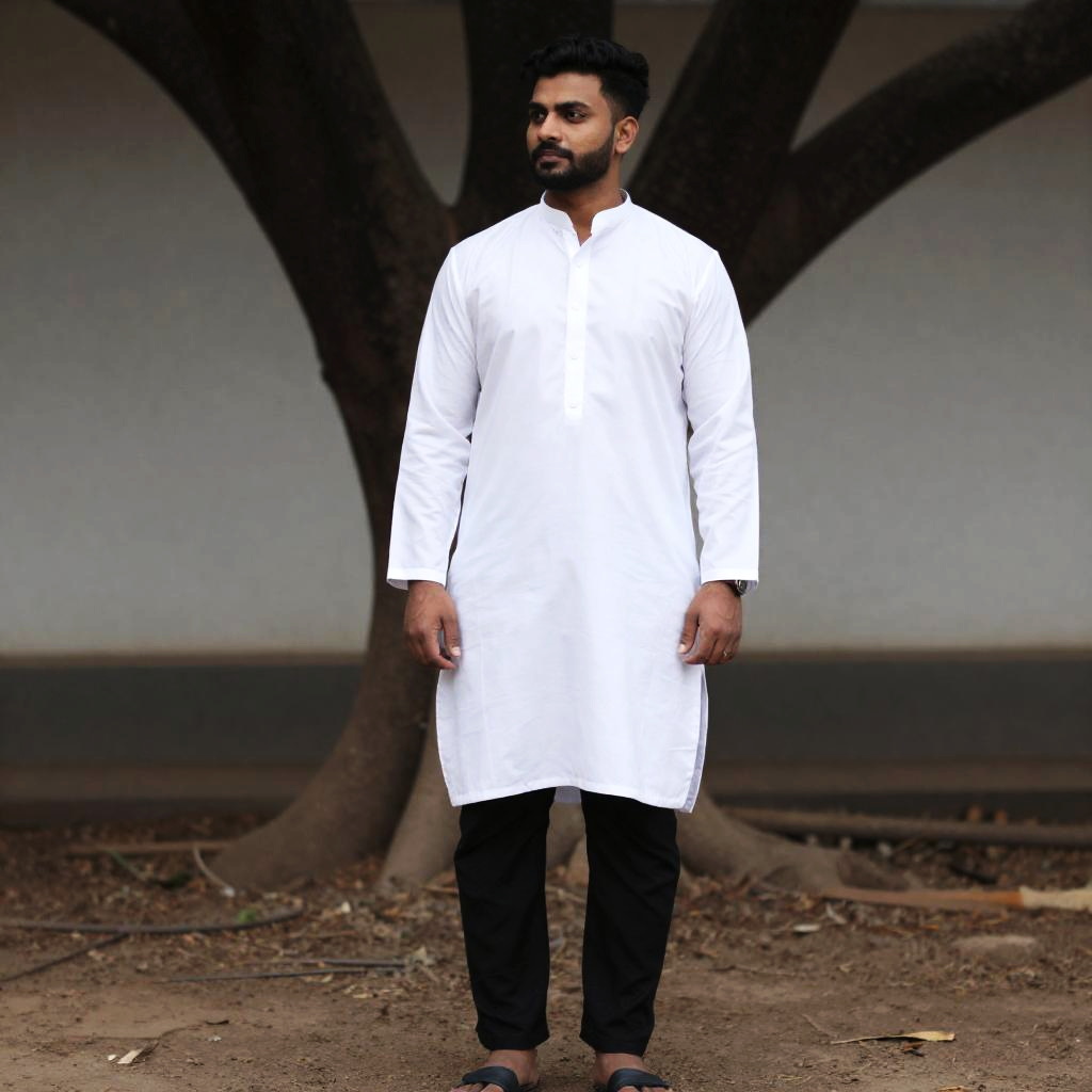 Kurta Pajama Man Colour, a man in a white shirt and black pants standing in front of a tree