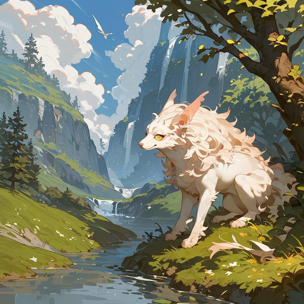 Cartoon_furry, score_9, score_8_up, score_7_up, rating_safe source_anime, scenario, beautiful panoramic photo of a countryside with rectangular plots of land cultivated with lavender, prevailing colors purple, green and all their shades, presence of an old water mill powered by a small river, dirt road, trees on the sides