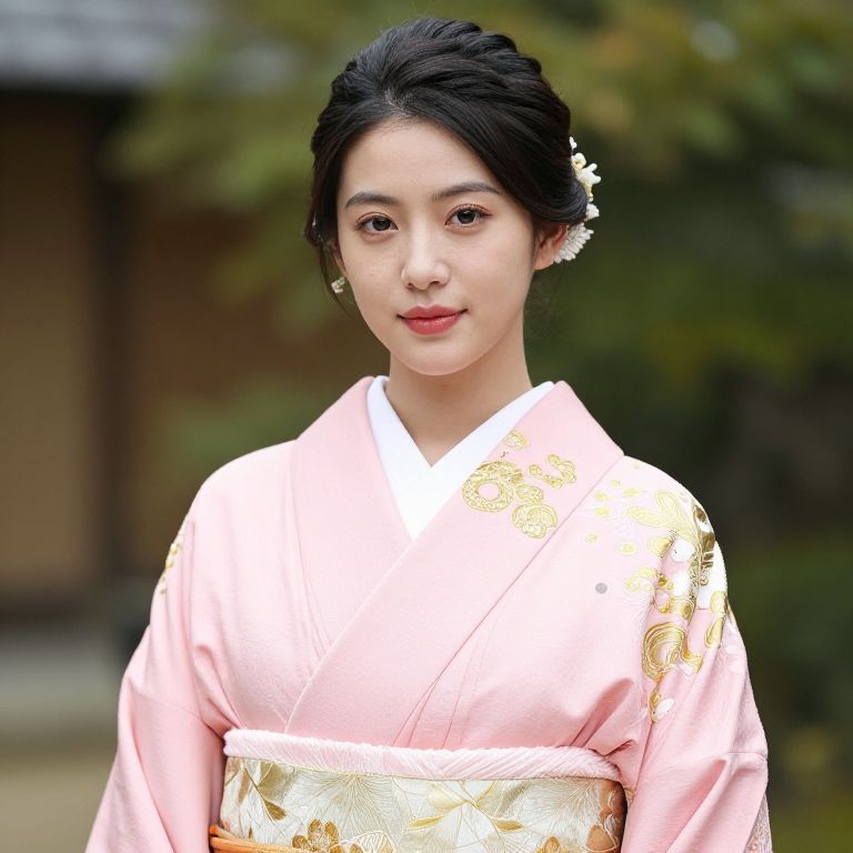 Elegant Woman in Pink Kimono