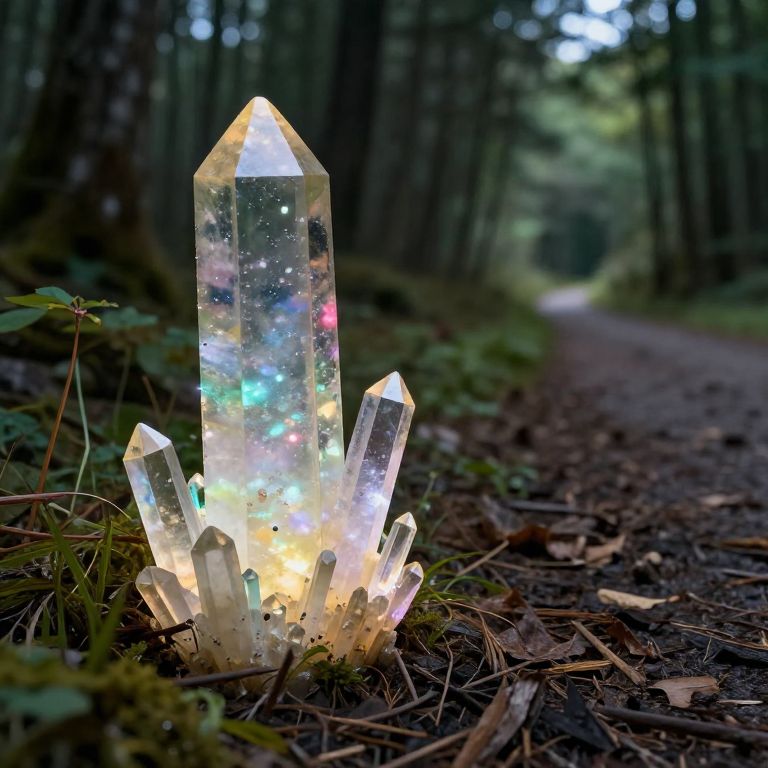 Colorful Quartz Crystals Along Forest Path