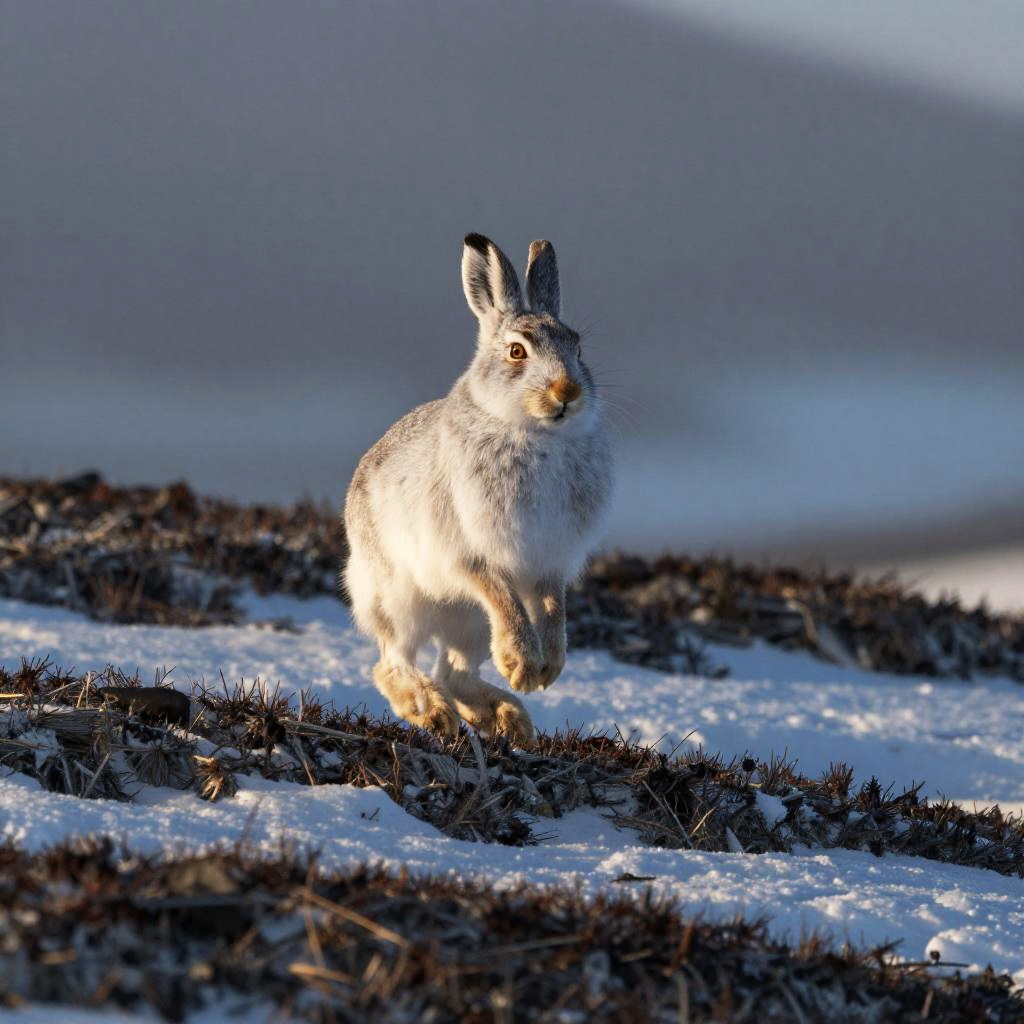 Heroic Arctic Hare in Tundra Leap
