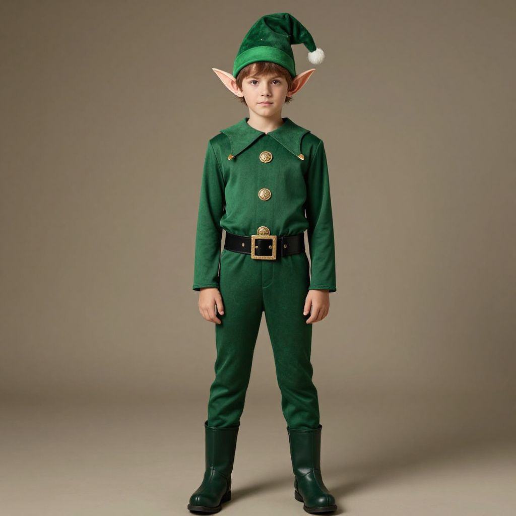 Luxury elf costume, pointy ears, hat, 1boy, belt, male focus, green headwear, boots, solo focus, full body