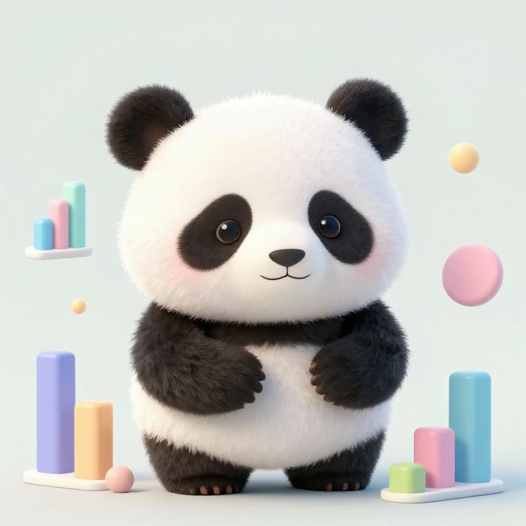 A panda interacting with a histogram, playful cartoon style, bright colors, data visualization theme, bars rising beside the panda, whimsical and educational illustration