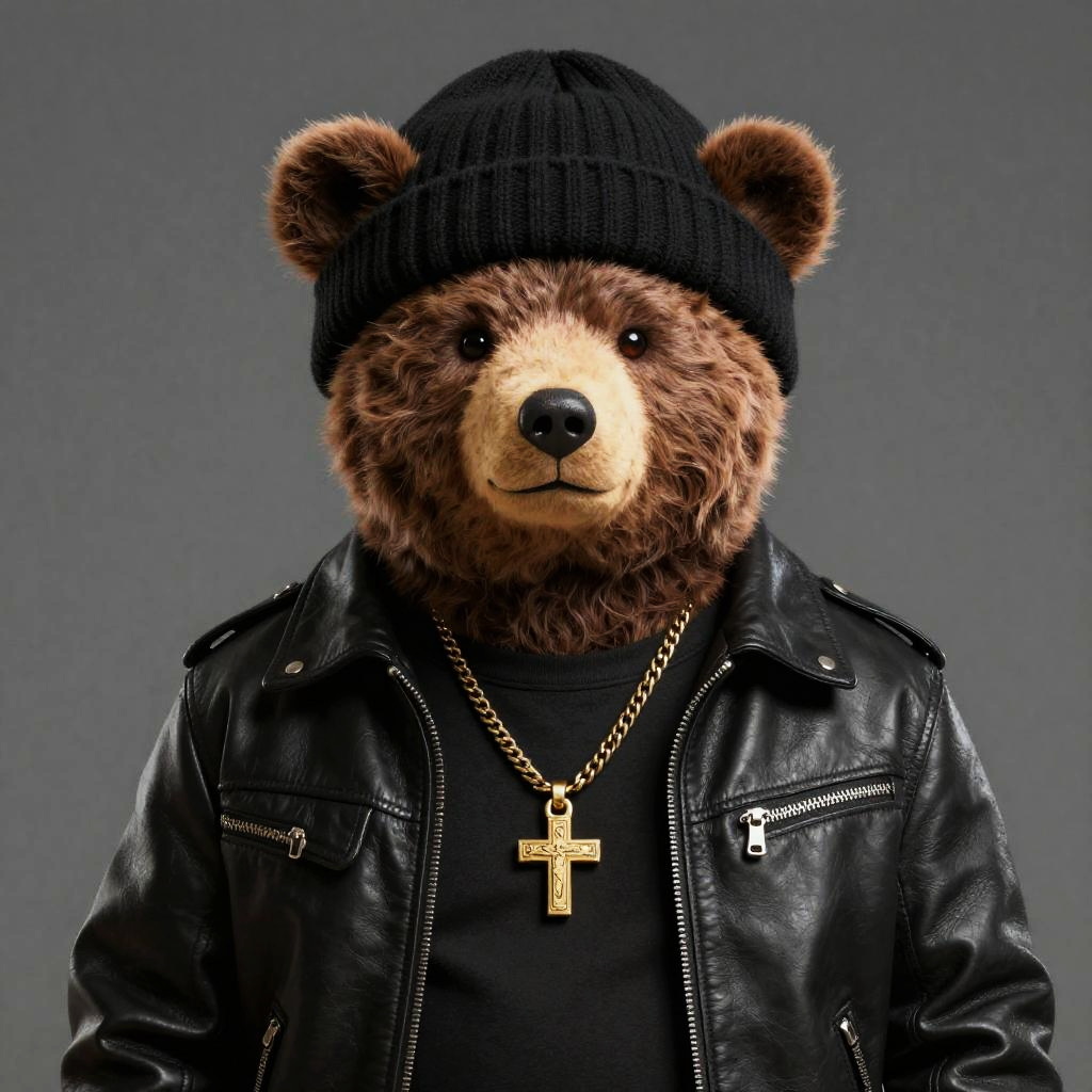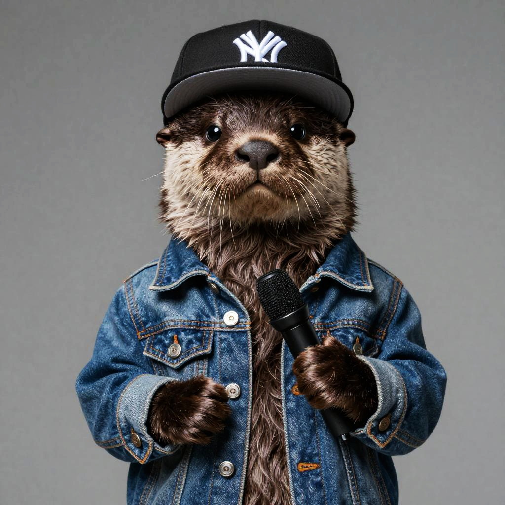 Antropomorphic animal - otter depicted as a rapper, wearing a denim jacket and a snapback