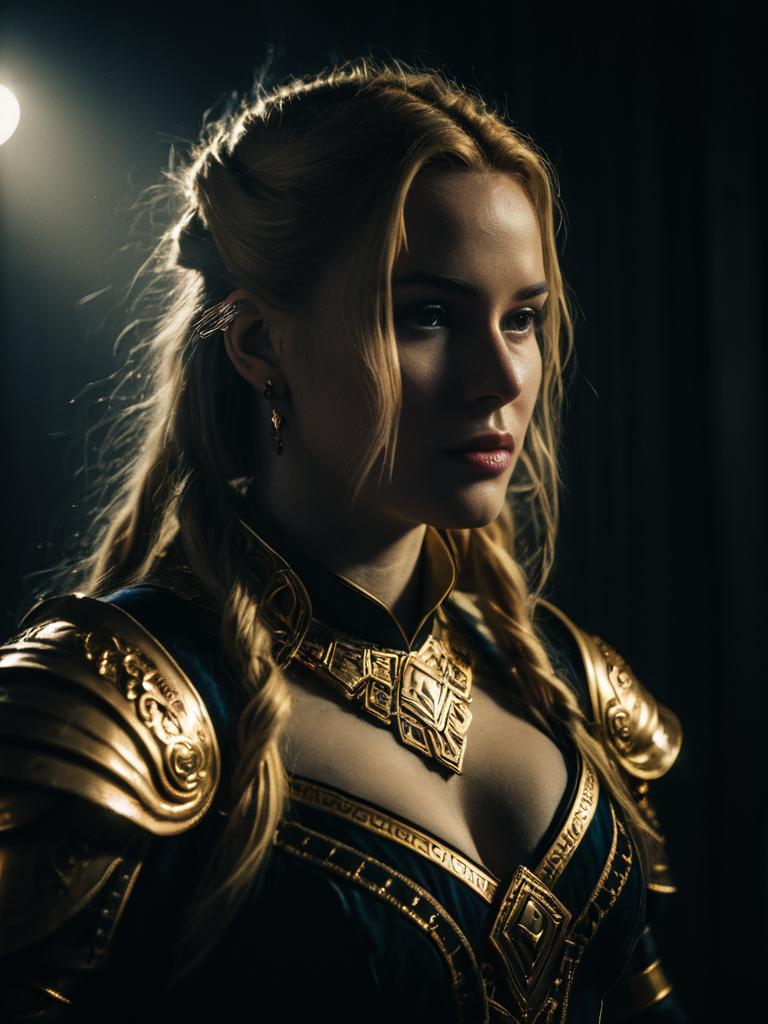 Sexy cosplay woman character wearing Freyja Wion costume. Realistic photo. Jane Doe dressed as Freyja Wion --sref 1391
