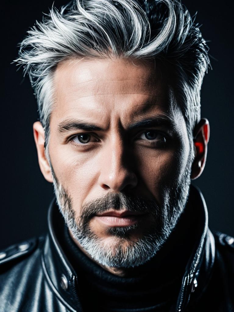 Man in Modern Fashion Costume, close-up detailed headshot with trendy look
