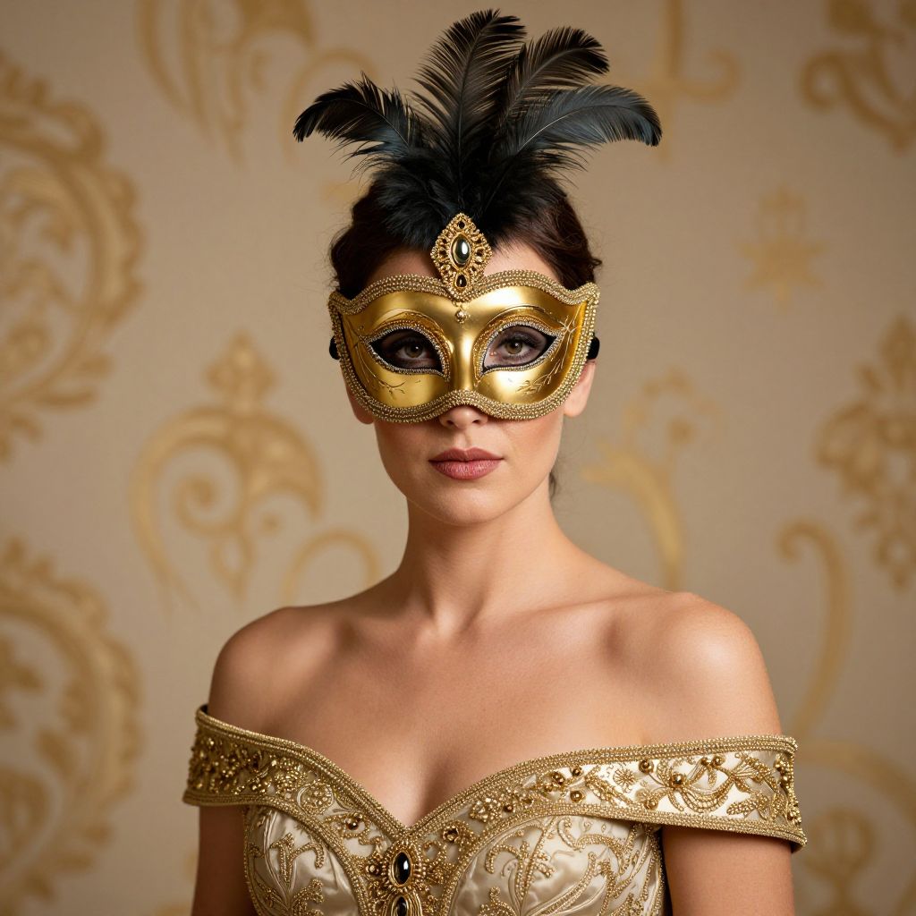 Elegant Woman in Golden Venetian Mask