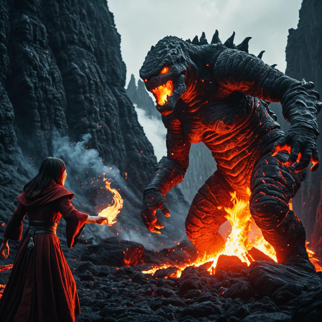 The cyclops occupies half of the screen, with a female bard releasing powerful sound magic.