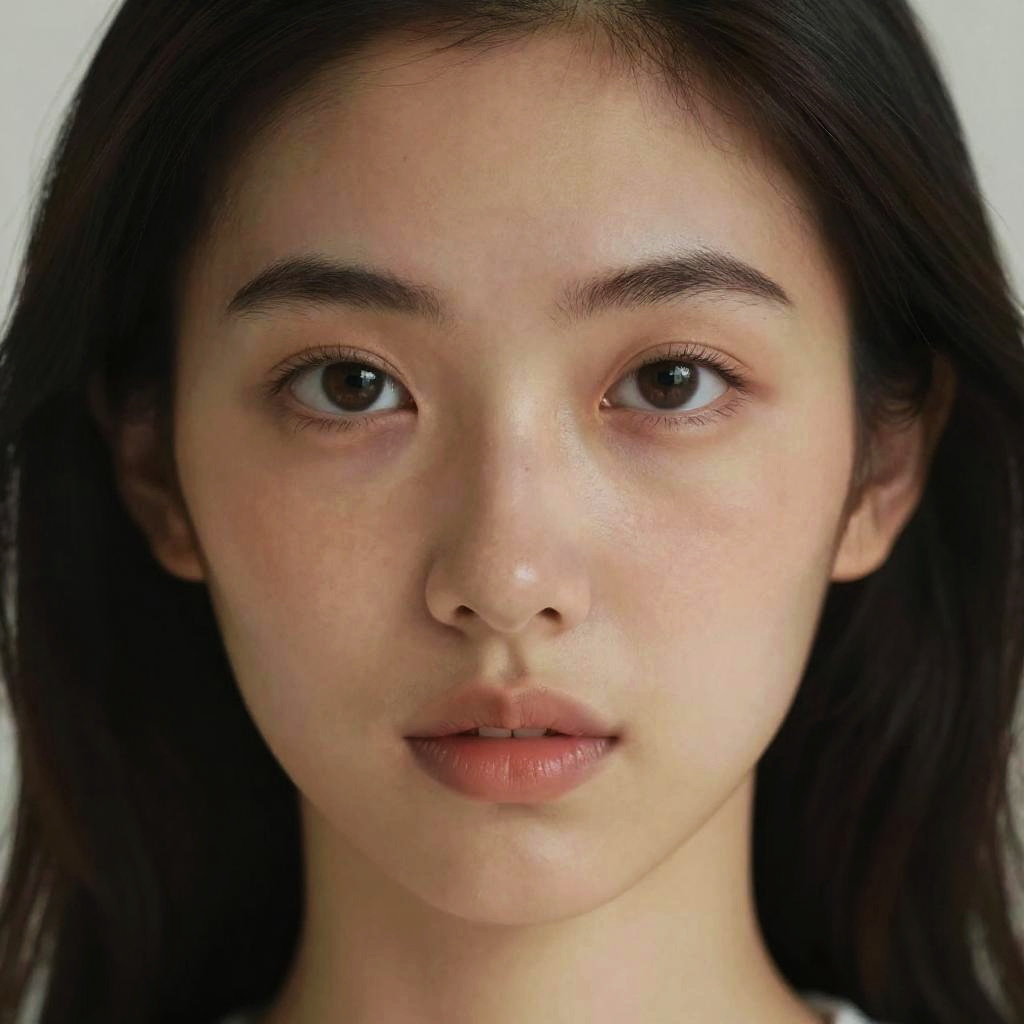Close-up portrait of an East Asian young woman with a confident expression, demonstrating positive canthal tilt with upward eyelid angle. The image features warm ambient lighting, clear skin, subtle makeup enhancing natural eye shape, and a modern aesthetic. High-resolution focus on her eyes and face.