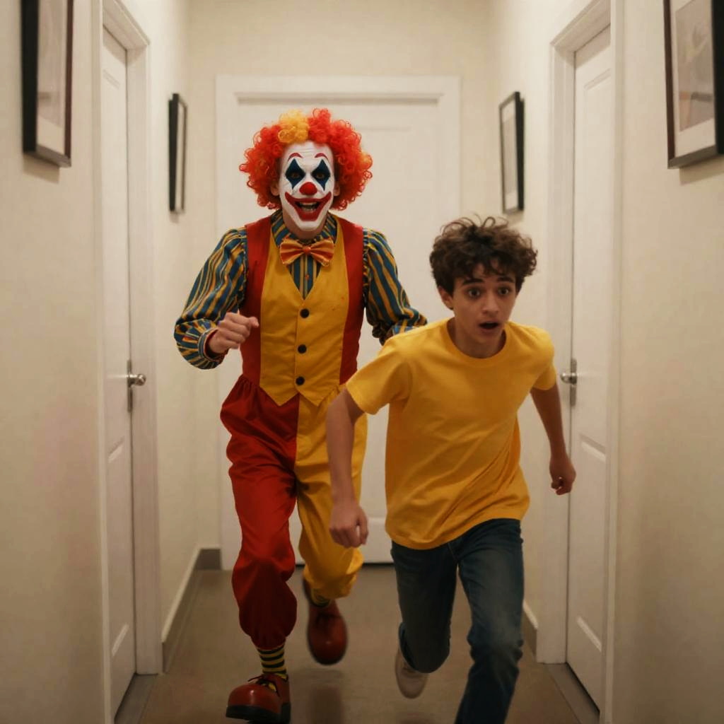 Clown Chase in a Narrow Hallway