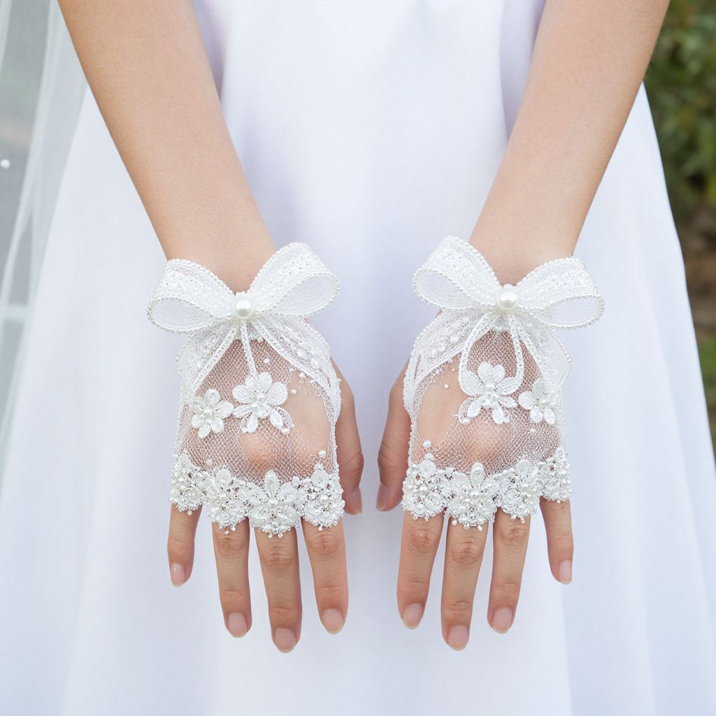 White beaded lace bow-knot bridal fingerless gloves woman wedding gloves wedding accessories gloves for brides WAS10003