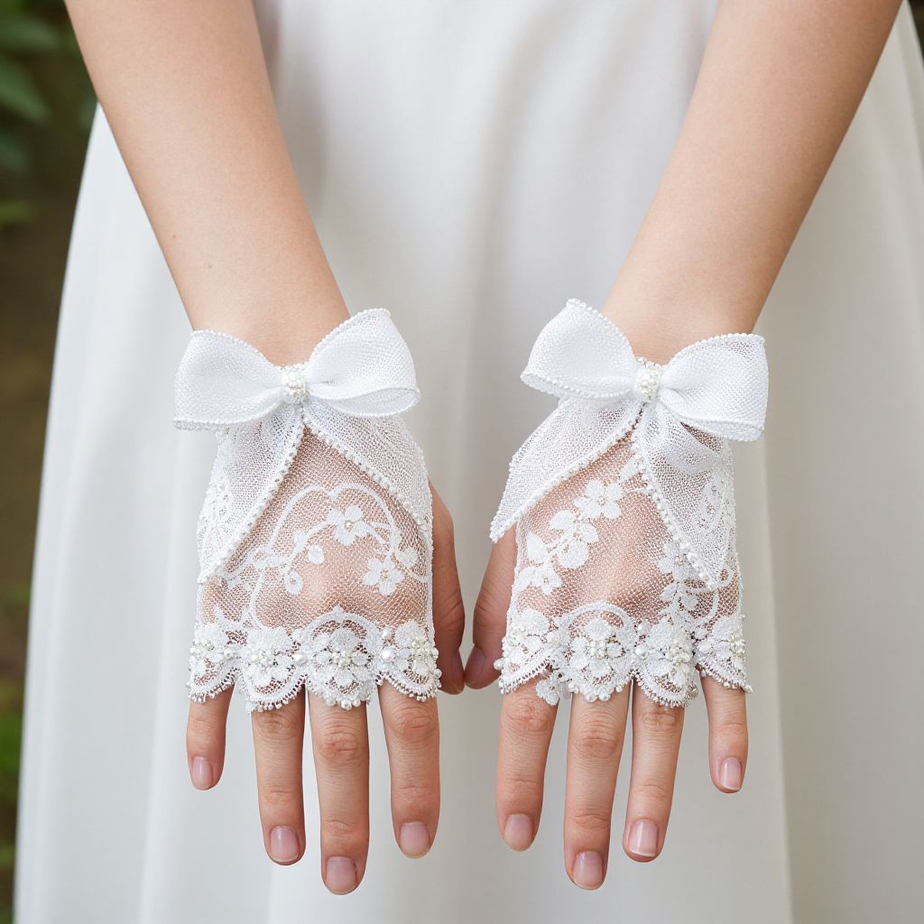 White Beaded Lace Bridal Gloves