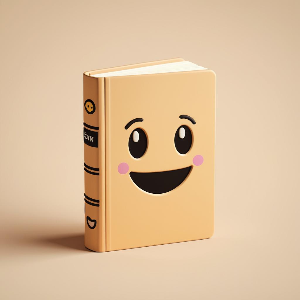 Tiny cute tan book emoji, smile, soft smooth lighting, with soft pastel colors, 3d icon clay render, 100mm lens, 3d blender render, trending on Polycount, cream background, physically based rendering, centered