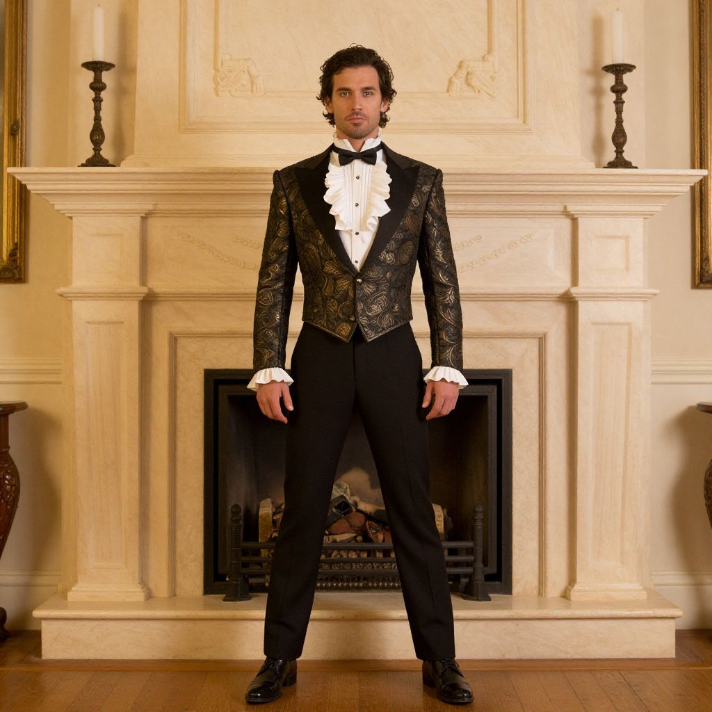 Bucciarati Costume, man in a costume standing in front of a fireplace
