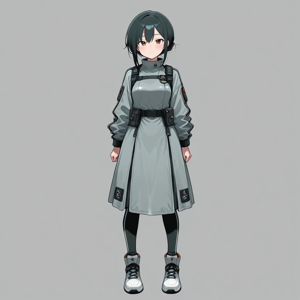 Masterpiece, best quality, newchinesestylesuit, 1girl, looking at viewer, full body, simple background, Cement Gray dress