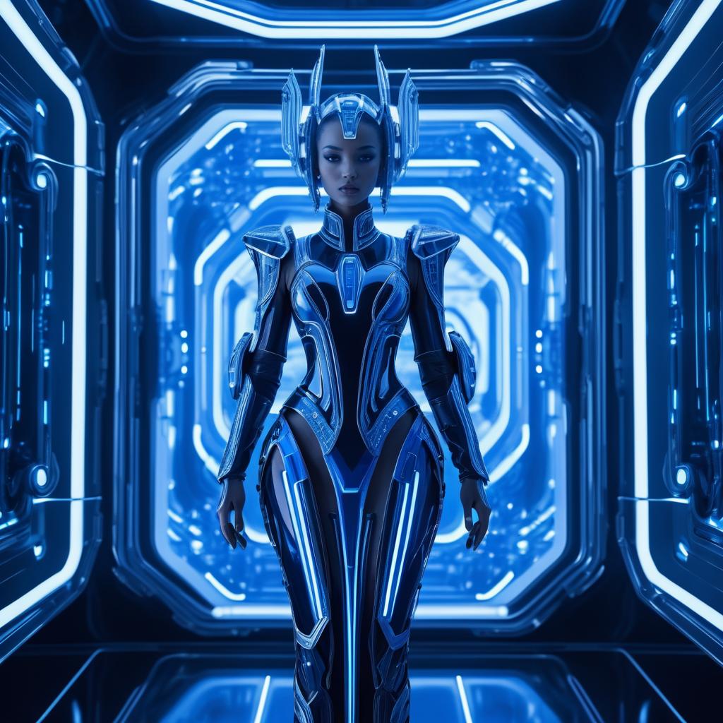 Futuristic Female Robot in Metallic Blue Armor