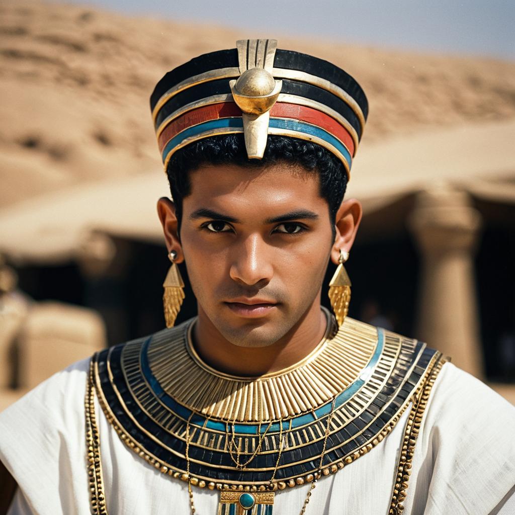 Dark-Skinned Man in Egyptian Style Jewelry by Pyramids
