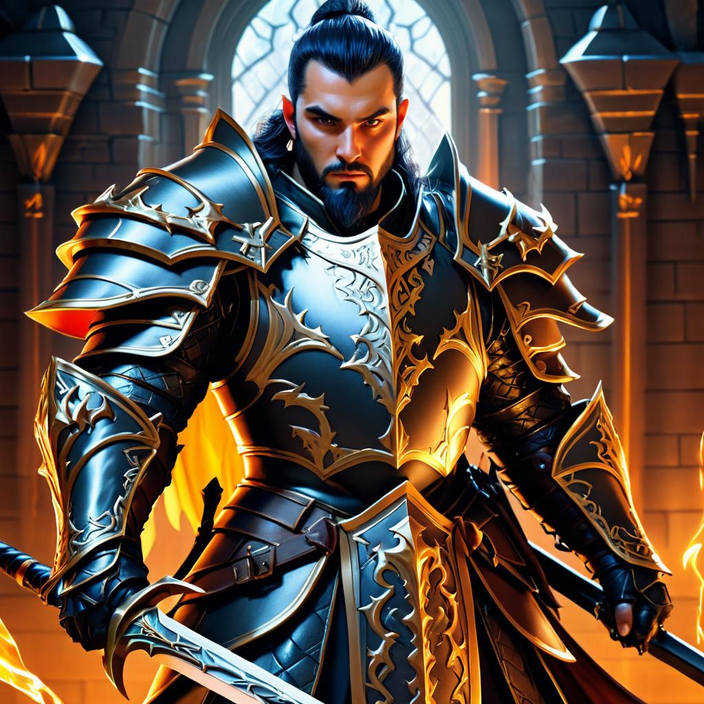 Fantasy character illustration of a dragon knight in Dungeons & Dragons by Artgerm, Greg Rutkowski. Styled with cinematic lighting and high detail.