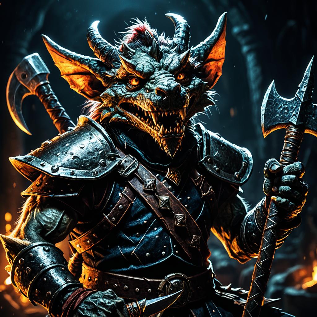 Kobold Warrior with Axe in Dark Fantasy Setting