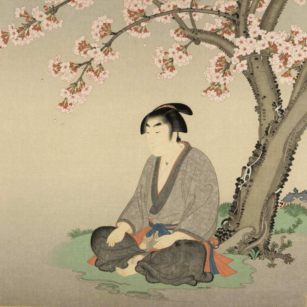 Serene Samurai Beneath Cherry Blossoms